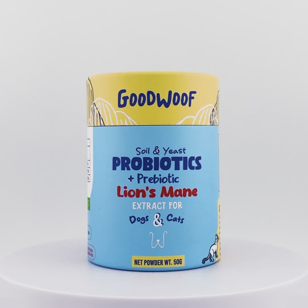 S. Boulardii, B. Coagulans & B. Subtilis are resistant to heat, stomach acids and antibiotics. Effectively reduces diarrhoea while improving gut, immune & skin health. Lion’s Mane is a functional prebiotic known for enhancing brain, cognitive & neural function while reducing anxiety & depression. Recommended for pets with IBD or SIBO.